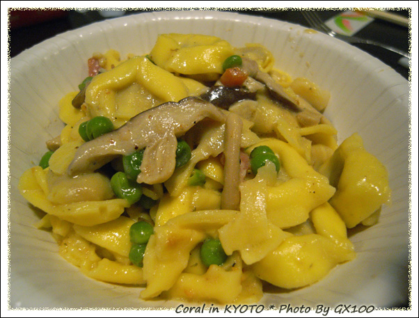 第一次看到有包餡的義大利麵耶!!這裡頭是包菇類真有趣。パオラさん怕我們吃不慣一開始還問我們這個ok嗎?不行的話他可以改用一般細長的義大利麵條,沒吃過當然是要試試囉!!味道還不錯呢~~~