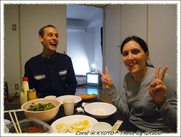 整晚都耗在他們家,晚上12點多才離開。パオラさん義大利的家有2隻貓,她在和她妹妹SKYPE視訊的時候,還有看到她們的家的喵喵呢,アンドレアさん也有一隻貓,是パオラさん撿到的流浪貓送給他養,名字叫做ゴミちゃん(日文名字喔),該不會這隻貓一到他家就去翻垃圾桶,所以叫垃圾@@,果然被我猜中了,呵呵!!