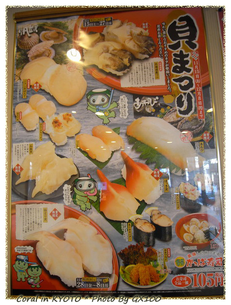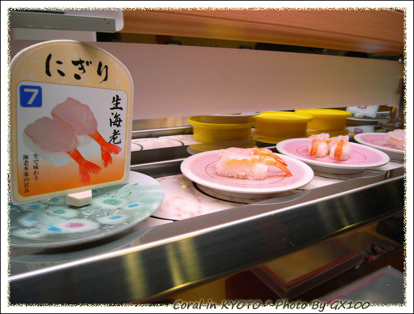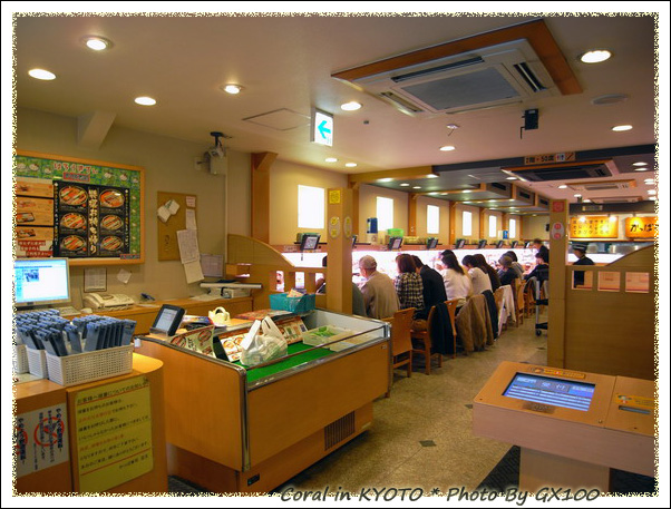 河原町三條店的かっぱ寿司,毓昕不記得這家店在哪,我們從三條走到四條再走回三條,才找到這家店,嗚~~~我快餓昏了!!下午時段竟然客滿,等了一會才輪到我們。