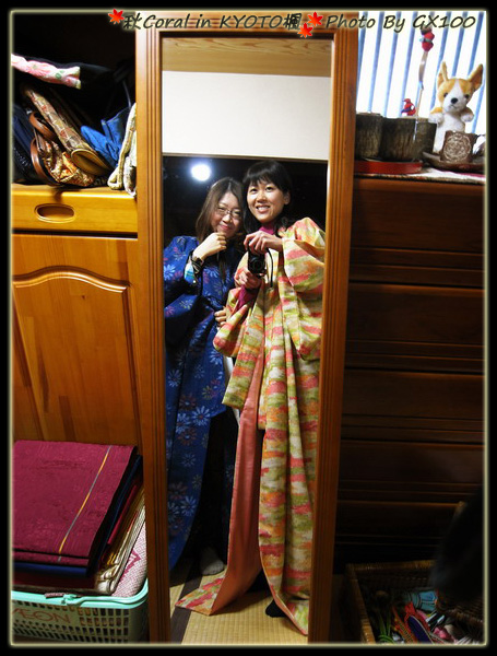 這天在遊月變身就只有曉清和我,秀雲千里迢迢從東京扛和服到京都,一早先在民宿著裝完畢,超厲害的,能自己穿和服!!