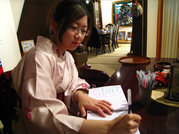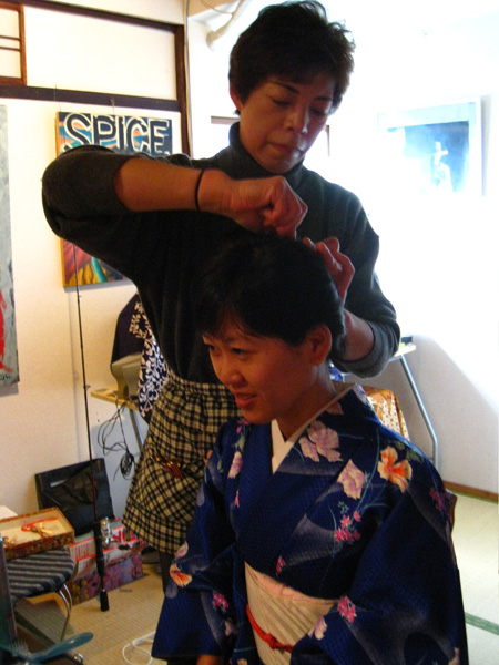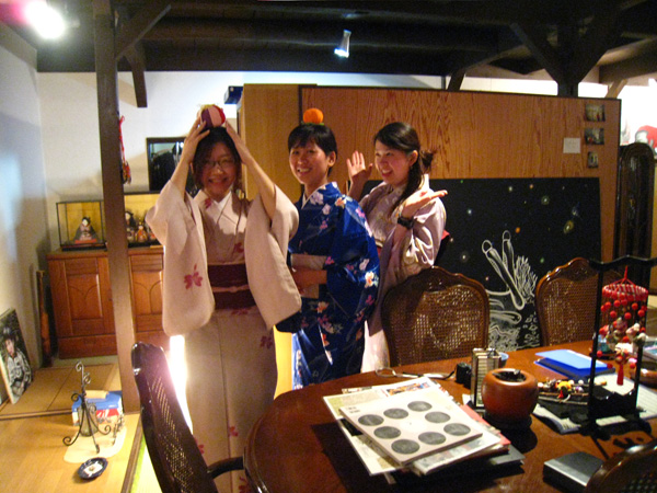 原先想計劃來個舞妓變身的,1萬多日幣都準備好花下去了,不知怎麼最後變成和服,也好,頂著大白臉出去太顯目我會害羞,哈哈!!