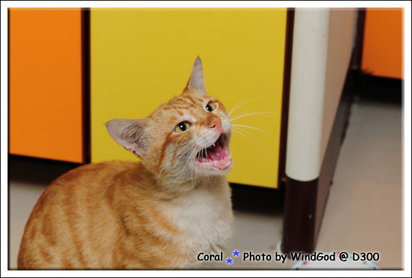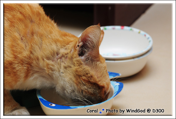 發發每天都要去外頭溜達,不讓牠出去就喵個不停,玩累了回家沒人開門也喵個不停,半夜回家一定吵到我媽起床開門才肯閉嘴,真愛鬼吼鬼叫,你是不會口渴嘛!!發發似乎永遠吃不飽,吃完一碗就會喵喵叫討下一碗,狼吞虎嚥吃相很糟糕,還會搶其他隻貓的飯碗。