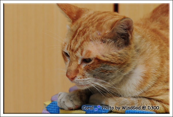手肘不知道是不是去打架弄傷的,發發沒當家貓的天分。